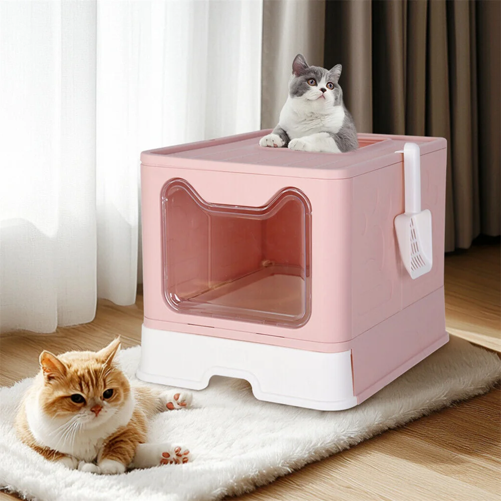 Large Pink Cat Litter Box Tray Top Entry Cat Toilet with Lid Hooded Kitten Litter Drawer Tray with Scoop No Smell Easy CleaningLarge Pink Cat Litter Box Tray Top Entry Cat Toilet with Lid Hooded Kitten Litter Drawer Tray with Scoop No Smell Easy Cleaning